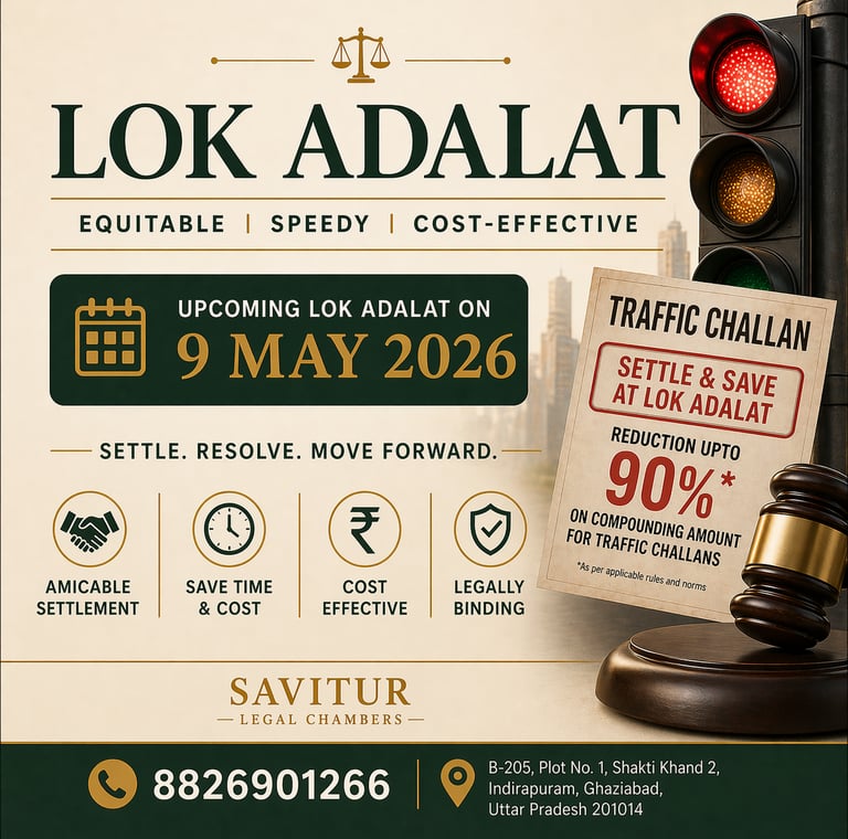 From a legal and procedural standpoint, the National Lok Adalat on 9 May 2026 represents a time-bound opportunity to resolve eligible traffic challans within a structured statutory framework.